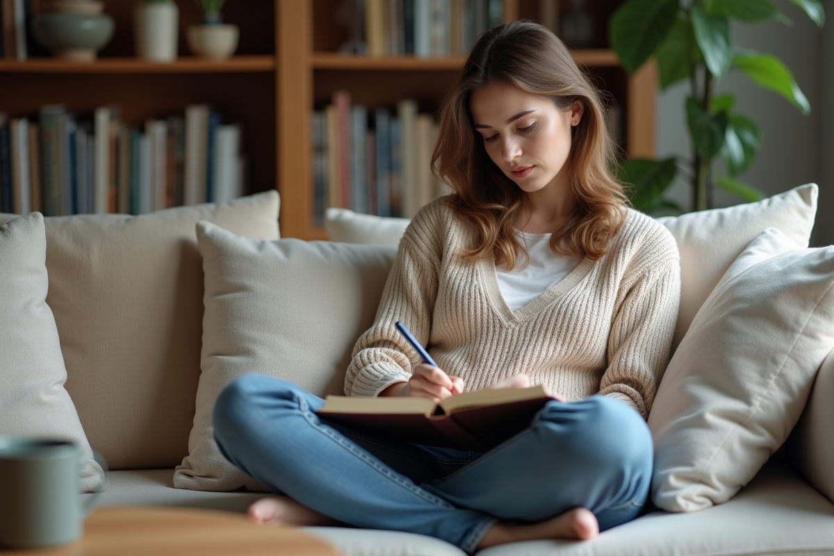 La méthode 5-4-3-2-1 se pratique partout, sans matériel. Installez-vous, respirez, puis repérez cinq éléments visuels : un détail de décoration, un livre, une trace de lumière, peu importe leur taille. Ensuite, portez attention à quatre sensations tactiles : la chaleur du fauteuil, la texture d’un vêtement, la sensation du sol sous les pieds, la fraîcheur de l’air. Poursuivez avec trois sons : un rire lointain, le ronronnement d’un appareil, le bruit de la rue. Identifiez deux odeurs : une effluve de savon, l’arôme d’un plat, ou même l’odeur du papier. Enfin, nommez un goût : bonbon, café, même la saveur de l’air.